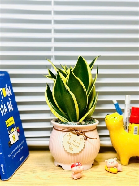 Lưỡi Hổ có lá cứng, thẳng, viền vàng nổi bật. Cây cực kỳ dễ sống, chịu hạn tốt, giữ form đẹp lâu và bền. Lá mọc vươn lên tượng trưng cho sự mạnh mẽ, phù hợp mọi không gian.