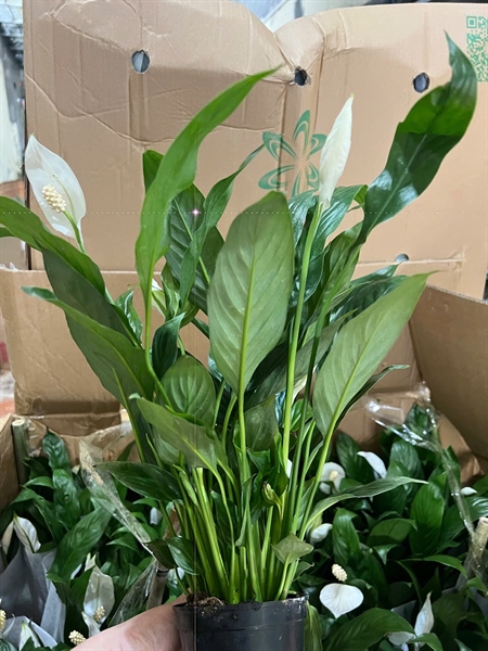 Đặc điểm: Lá xanh bóng, hình bầu dục, mọc đều từ gốc; hoa trắng thanh lịch, dạng mo hoặc cánh bầu, nở lâu, mang vẻ tinh tế và sang trọng. Thích hợp trang trí bàn làm việc, phòng khách, sảnh, kệ trang trí và không gian nội thất hiện đại.
