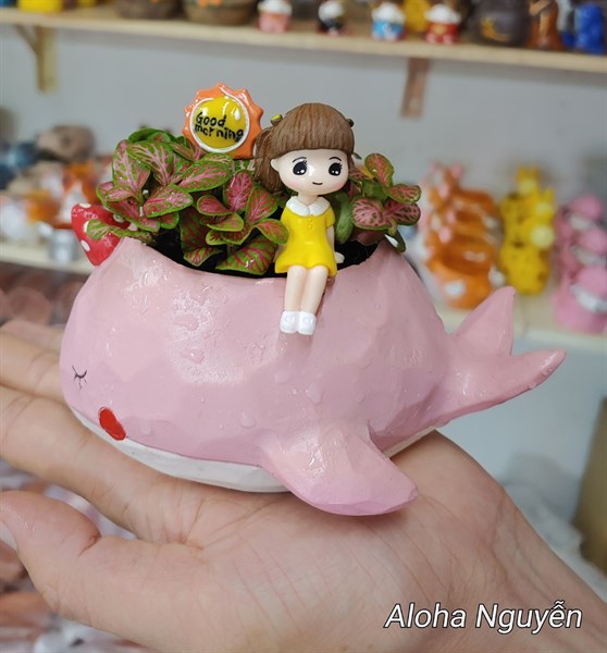 Kiểu chậu: Chậu cá heo mini dễ thương bằng resin