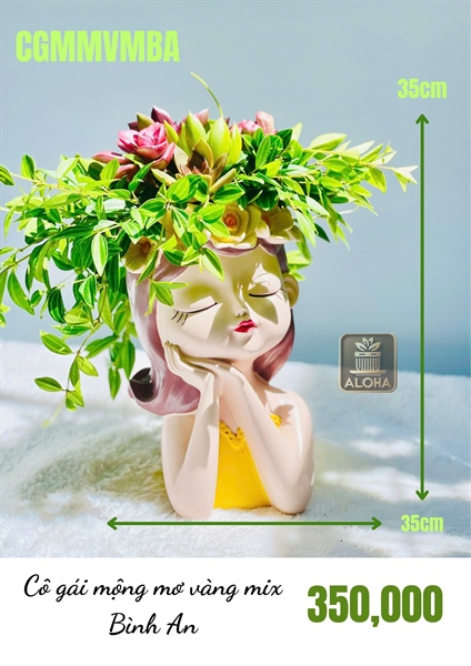 CHẬU CÔ GÁI MỘNG MƠ VÀNG MIX BÌNH AN SEN ĐÁ