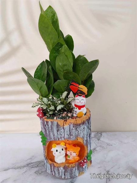 Tên sản phẩm: Chậu khúc gỗ mix Kim Tiền và Lá May Mắn
