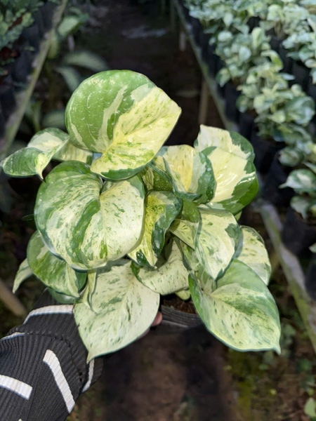 Đặc điểm: Lá xanh phối trắng tinh tế, form rủ mềm mại, thân leo khỏe, cây nhỏ gọn, tạo điểm nhấn sang trọng và gần gũi cho không gian nội thất.