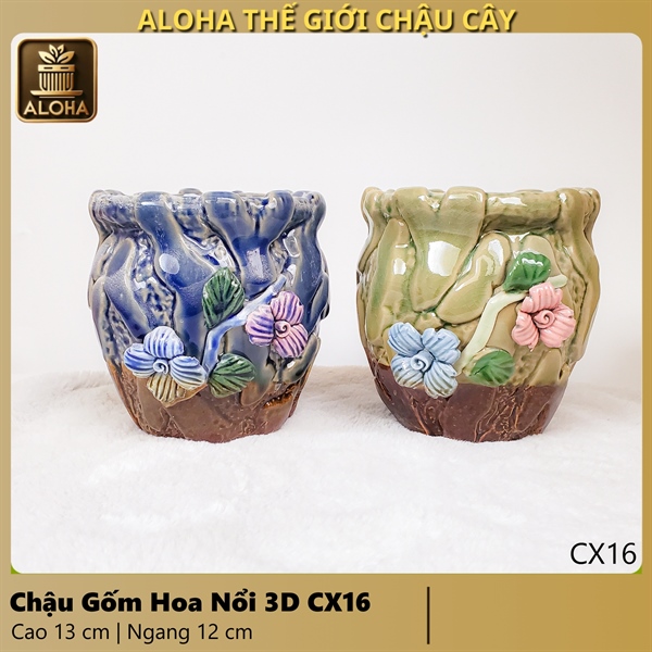 CHẬU GỐM HOA NỔI 3D CX16T36 ( THÙNG 36 CÁI )