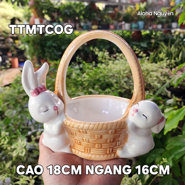 CHẬU GỐM THỎ MẸ THỎ CON ÔM GIỎ