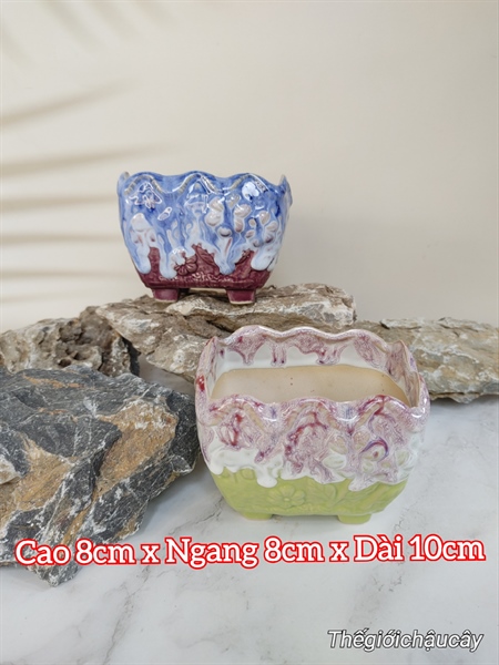 CHẬU BỒN HOA MEN TỦA NHỎ(CAO 8CM X NGANG 8CM X DÀI 10CM)