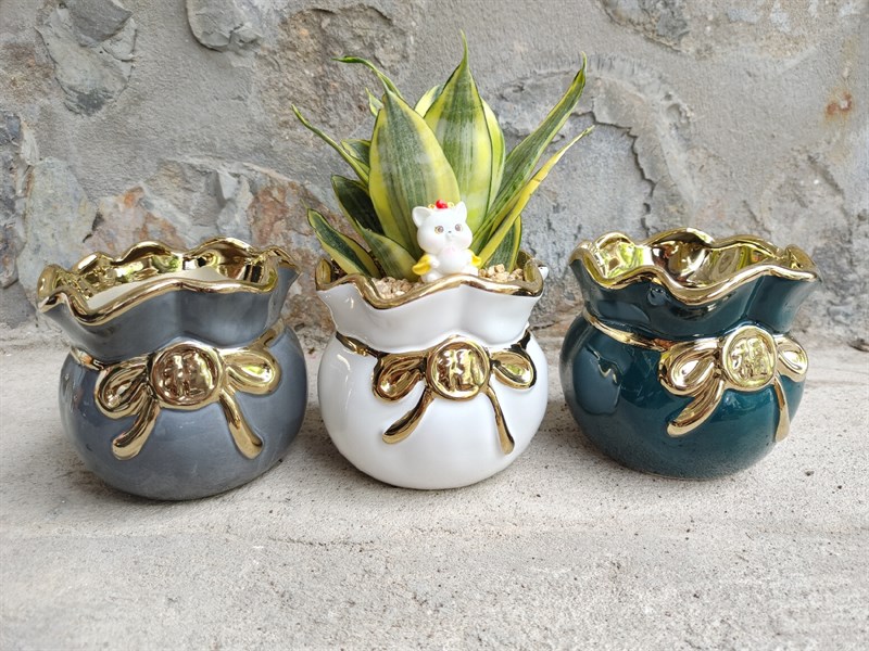 CHẬU TÚI MAI MẮN(CAO 10CM X NGANG 10CM)