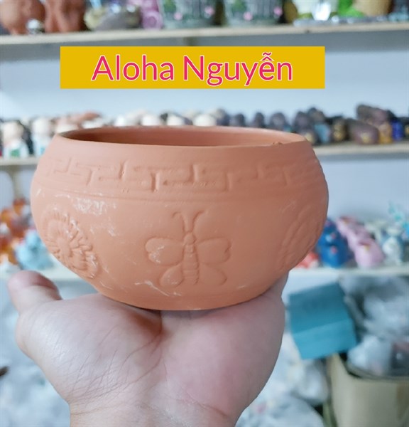 CHẬU BO HOA VĂN ĐẤT NUNG (CAO7cm X RỘNG11cm)